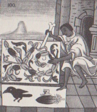 āmamachiyōtl in oncān cānah tlein tlahmāchtli quichīhuah , les modèles en papier d'où elles copient ce qu'elle font (comme) broderie - the paper patterns from which they took the shape of whatsoever they made. Sah8,49.