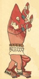 | .IZTLACOLIUHQUI: iztlacoliuhqui: Dans la mythologie aztèque, Itztlacoliuhqui est le dieu du gel, des objets durs et froid. Il était connu sous le nom de Tlahuizcalpanteuctli qui tira une flèche sur Tonatiuh, le dieu Soleil, la flèche rata son but et le Soleil lança sa propre flèche, perçant la tête du seigneur de l’aurore. A ce moment le seigneur de l’Aurore se transforma en dieu des pierres et du gel. Illustration Codex Borbonicus 12. |
